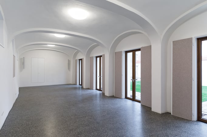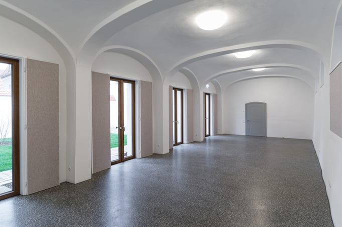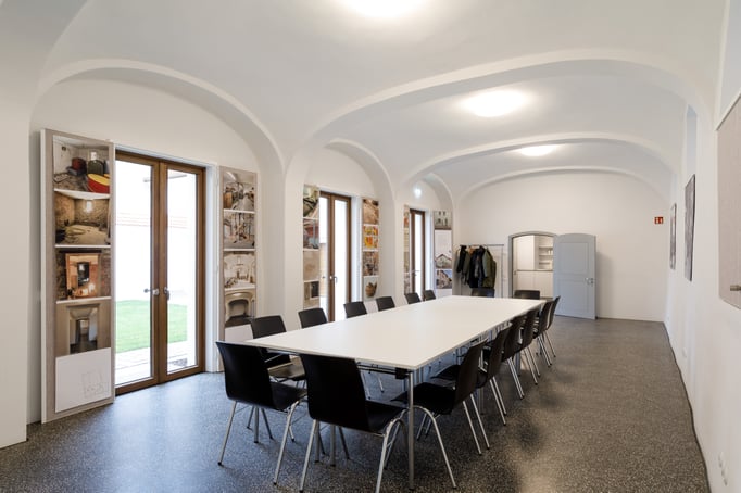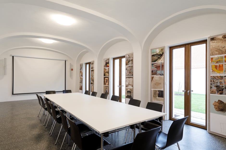 [zur ständigen Grundausstattung gehören 4-6 Tische, 20-30 Stühle, Musikanlage, Mikrofon, Beamer, Leinwand, 1 Flipchart-Ständer, 1 Garderobenständer]