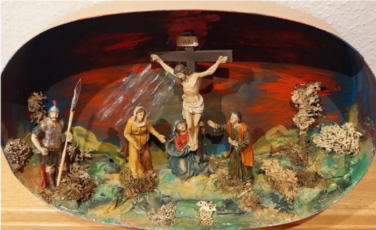 Kreuzigung Christi (Passionskrippe gestaltet von Franz Glas während eines Familienwochenendes des Krippenvereins im Kloster Strahlfeld 2018), Foto: Heike Glas